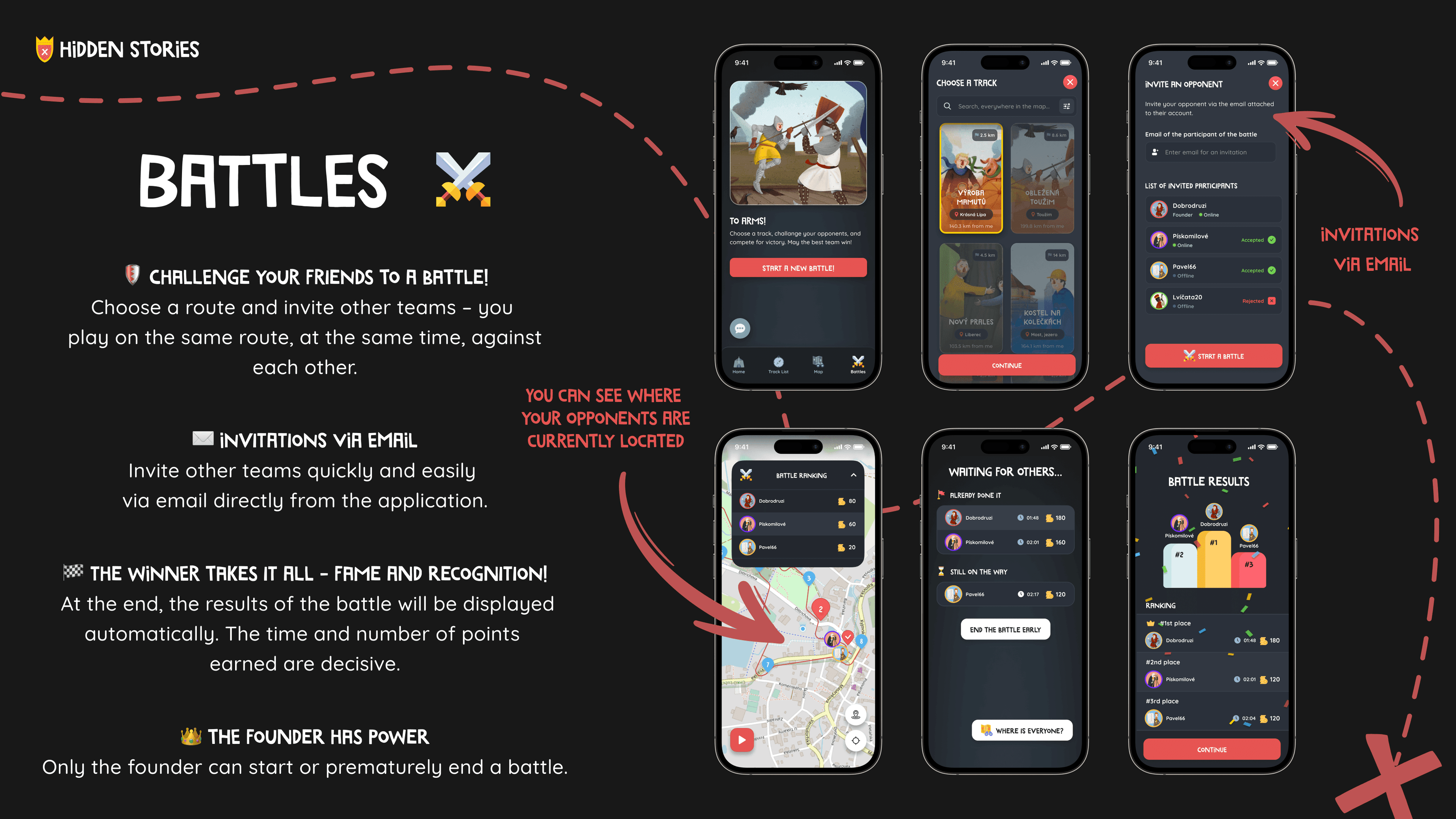Discover BATTLES - a new game feature in the app. Compete with other teams at the same time and in the same place. The accuracy of your answers is the main factor, but time can also play a role. You can also track the position of other teams on the map.